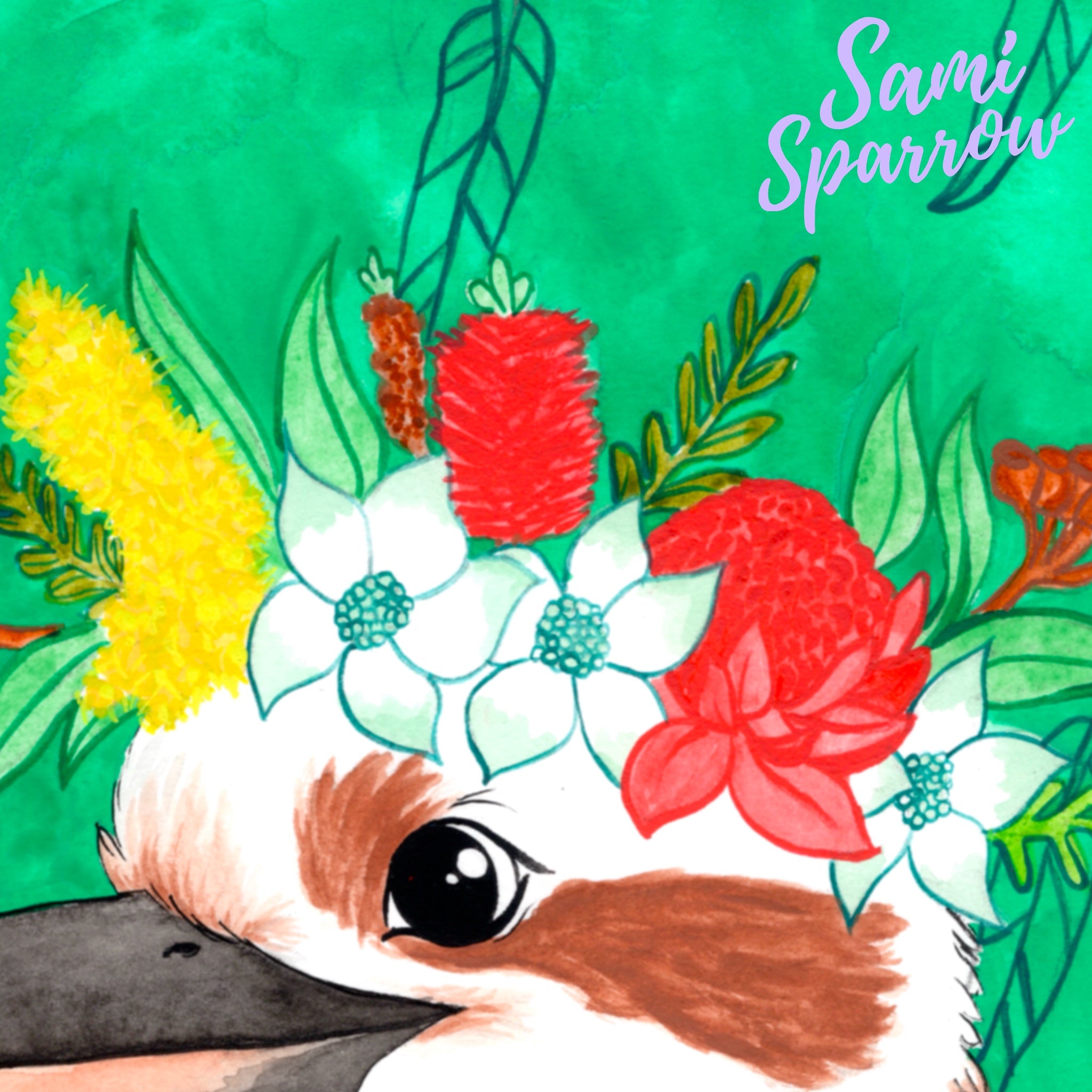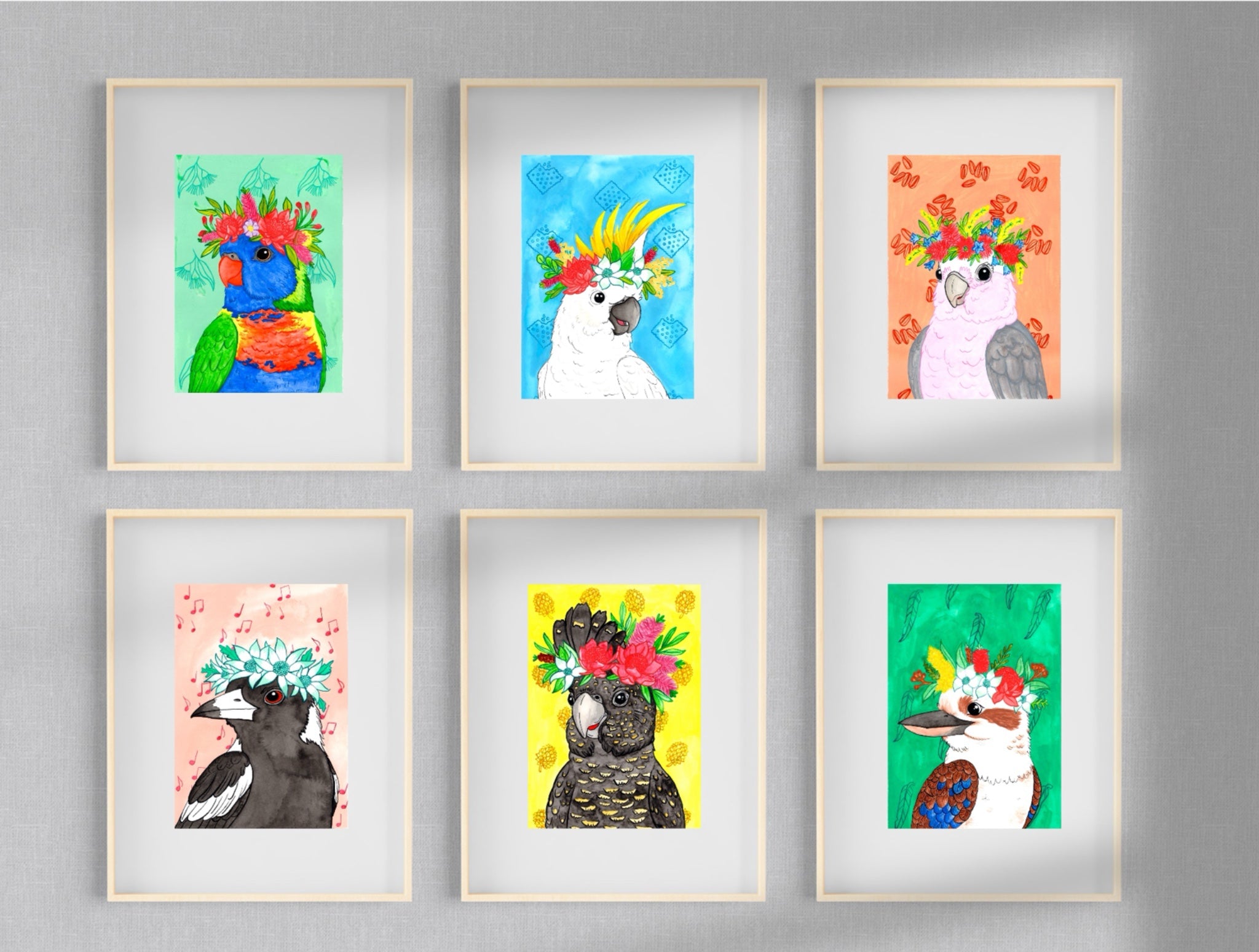 The detailed feathers, bold colours, and whimsical botanical accents make this piece a standout addition to nurseries, living rooms, creative studios, or nature-inspired décor. Whether you're an Australian wildlife lover or simply enjoy cheerful, colourful wall art, this print brings warmth and personality to any interior.